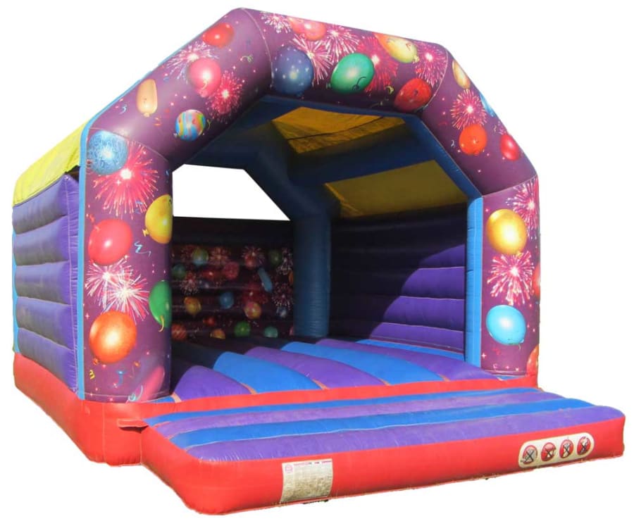 The bright and bold colours mean this castle will be the perfect eye-catching feature you want at your event| Predominantly purple and blue, it is a brilliant gender-neutral option, making it ideal for all special days! The stunning celebration themed painted artwork really helps to bring about that celebration atmosphere you are wanting to create! Covered in balloons and fireworks, it’ll be an explosion of fun for all the family, keeping you and your loved ones happy and bouncing all day!