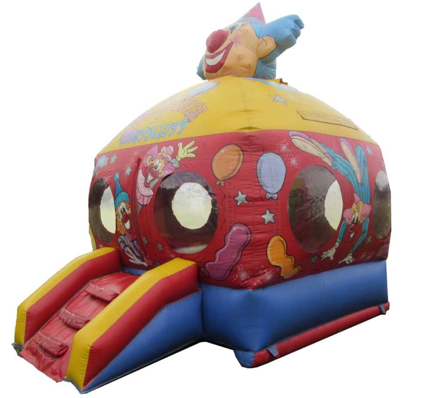 Its bright and bold primary colour scheme will draw all the attention on your special day to this beautiful feature piece! Covered in an array of stunning hand painted artwork, all circus themed, will be just what you need to bring the circus to town! Its fun sloped entrance will also allow for easy entry and exist to your children, allowing them to run away safely with the circus. Wanting more? We’ve got plenty! It’s unique transparent window features just adds to the excitement for all the little circus goers, a long with a fabulous Bish Bash man inside waiting to play! To finish off this masterpiece, there is an inflatable clown atop this castle, who will be eagerly waiting for you on your special day!