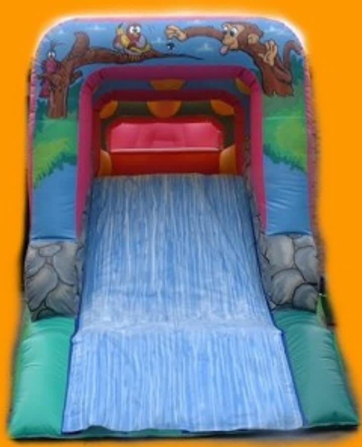 This brilliant 35ft jungle assault course shines in bright colours that will make this brilliant inflatable the centre of any party. With the base being different shades of green, it will help to create that great jungle feeling you’re trying to make. Covering the course, you will see an array of stunning graphic artwork that depicts all your favourite jungle animals. You will see the bold and brave lion, the reptiles crawling and climbing the walls and so many more jungle friends! Bound into the opening of the assault course and be ready to face the bish bash on your way through. Jump on them, bounce around them or knock them down, whatever you want! Leap through the tunnel to reach the climbing wall! Finish the course with the exciting slide and get ready to go again! It is the perfect option for any event where the kids want a little competition and enjoy some tests of strength!
