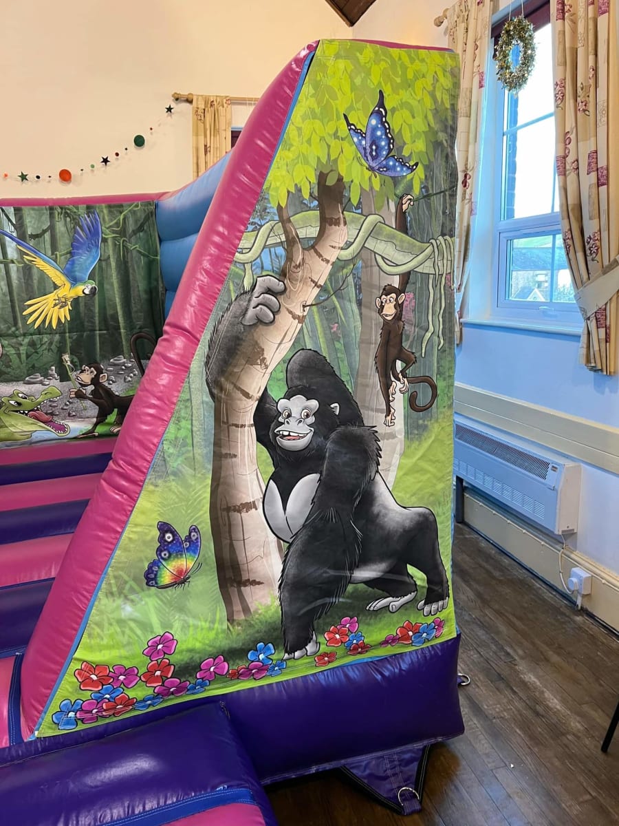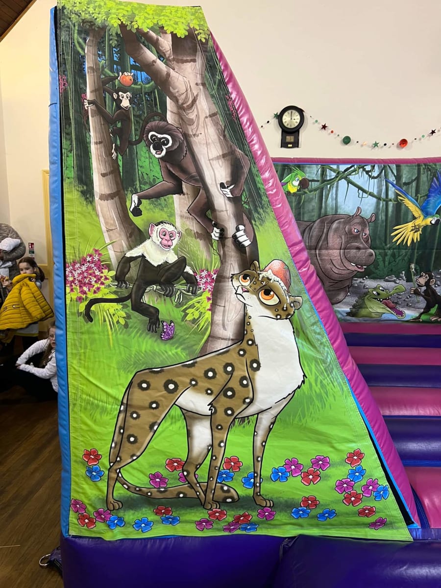 Step into the safari themed wonderland and be greeted by vibrant and eye-catching graphics! Looking at the castle you will notice adorable and friendly animals, including a beautiful gorilla, a stunning cheetah and a happy hippo! Be sure to take a closer look and see all the other jungle friends that are dotted around the castle. The attention to details is remarkable is will be sure to grab the attention of all your guests, both young and old.