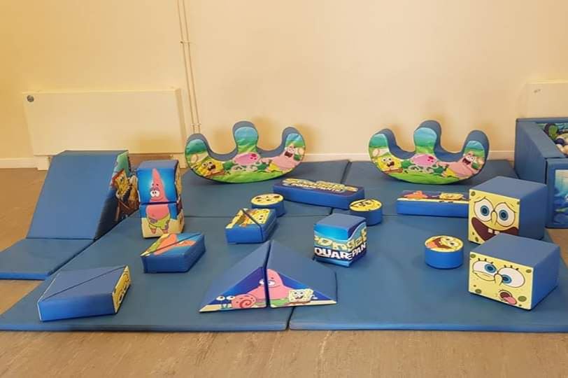 Our sponge bob Soft Play is an 19 piece kit that is supplied on soft safety matting that takes up a 12x12ft space. This is one of our most popular items as it is a great addition to any party to the keep the little ones busy. The 19 pieces consist of building blocks, rollers, build the picture with different shapes, 2 rockers, a mini slide and the best bit of all.. We do a matching ball pit and 5 hoppers if you wanted to add to it.