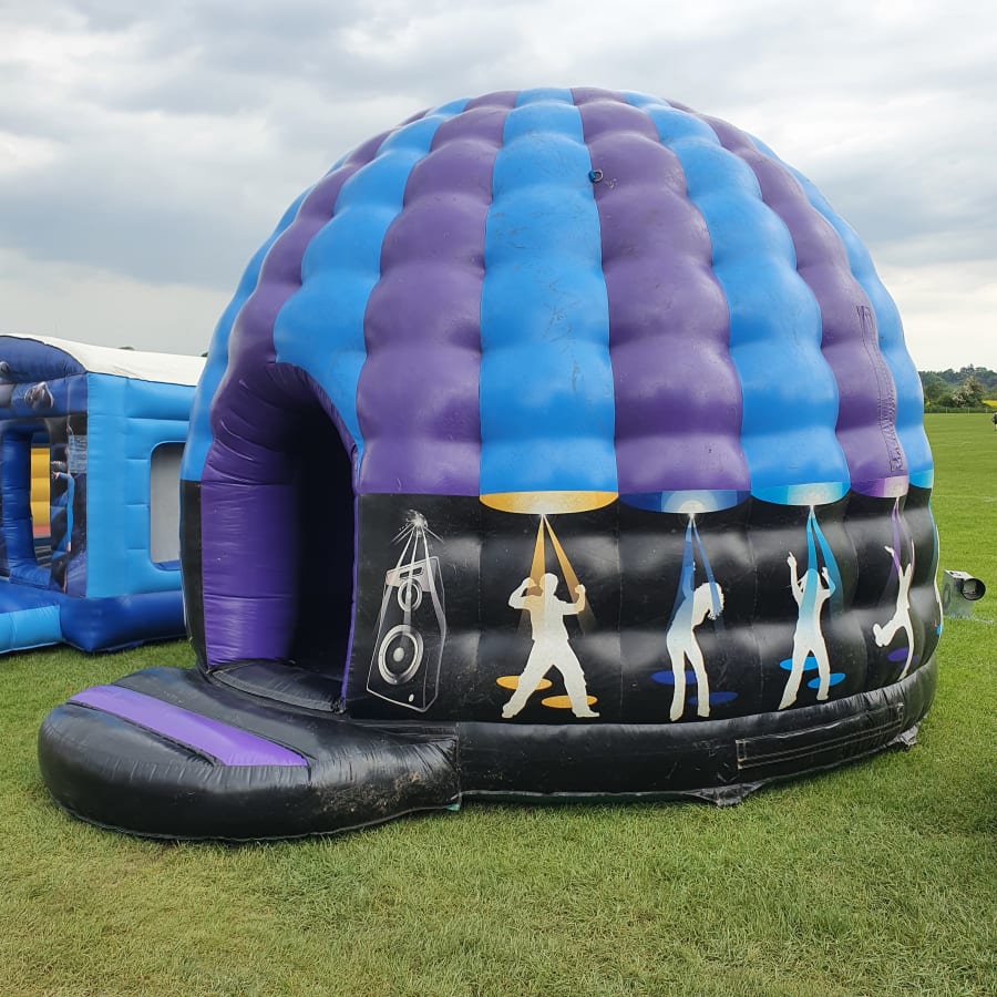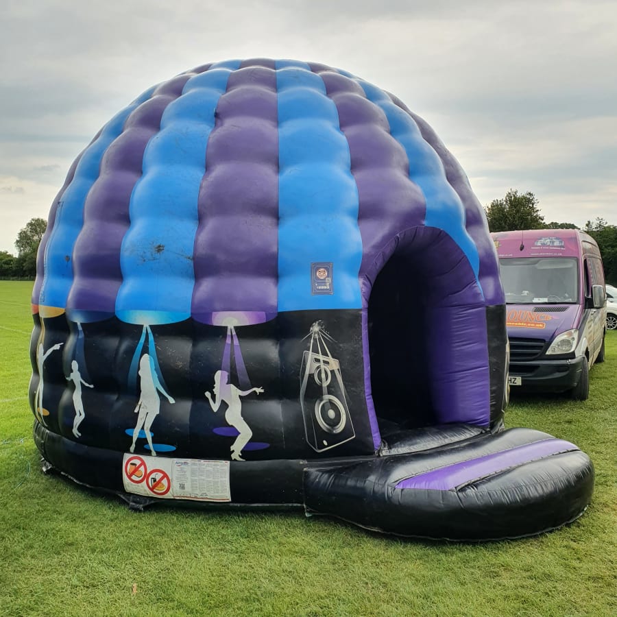 This stunning dome features black, blue and purple exterior with amazing graphic artwork of disco goers partying the night away on the side of the dome! It features an integrated Bluetooth speaker system that allows you to play your own playlist from your smartphone or tablet! You can also just plug your ipod or smartphone into the system and go from there! No matter your music taste, whack on the tunes and dance the night away to your own favourite songs. It is one of the most recent inflatables available on the market and has growing popularity so make sure to get your booking in asap! It also features built in lights that are synchronised with the music, just to make it that bit more special! It will be the talk of the party for weeks to come and make memories to last a lifetime.