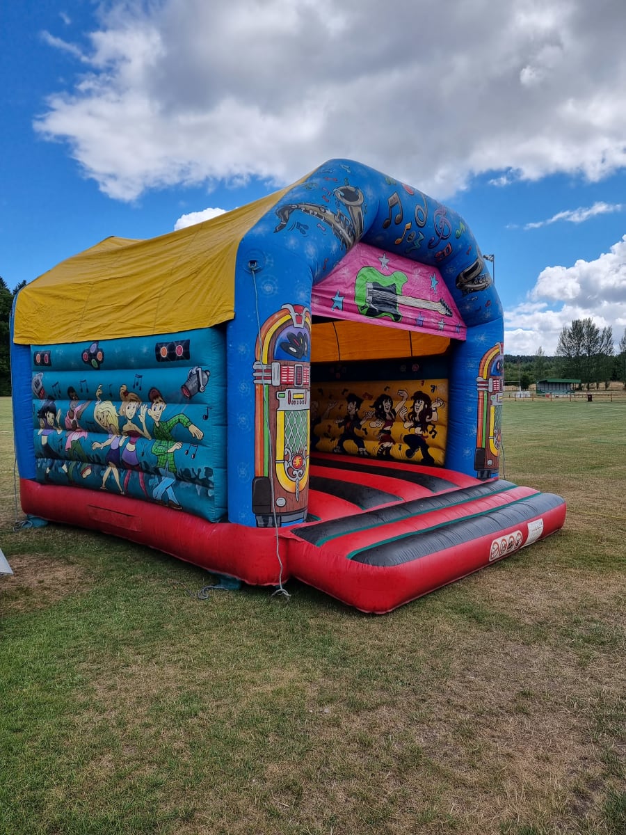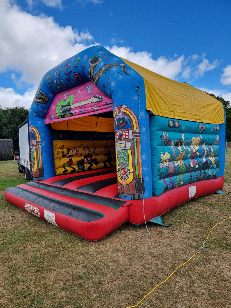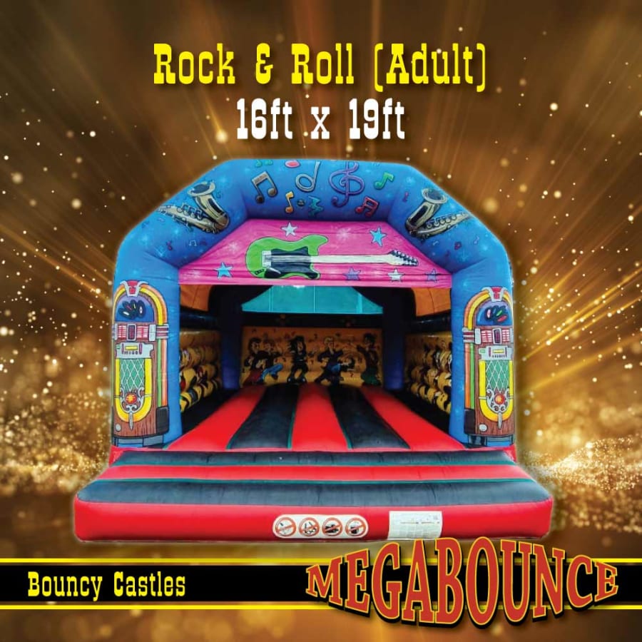 We are family run business, with our great team being proud to announce we are biggest bouncy castle hire in the 4 counties (Herefordshire, Worcestershire, Monmouthshire, Gloucestershire)! With hundreds, even thousands of happy bouncing customers, we can guarantee that your event will be our top priority. We can confidently assure you that your enquiry will be happily received, and this Brilliant 16ft x 19ft Rock and Roll Bouncy Castle will be ready and waiting for all your guests to arrive.
