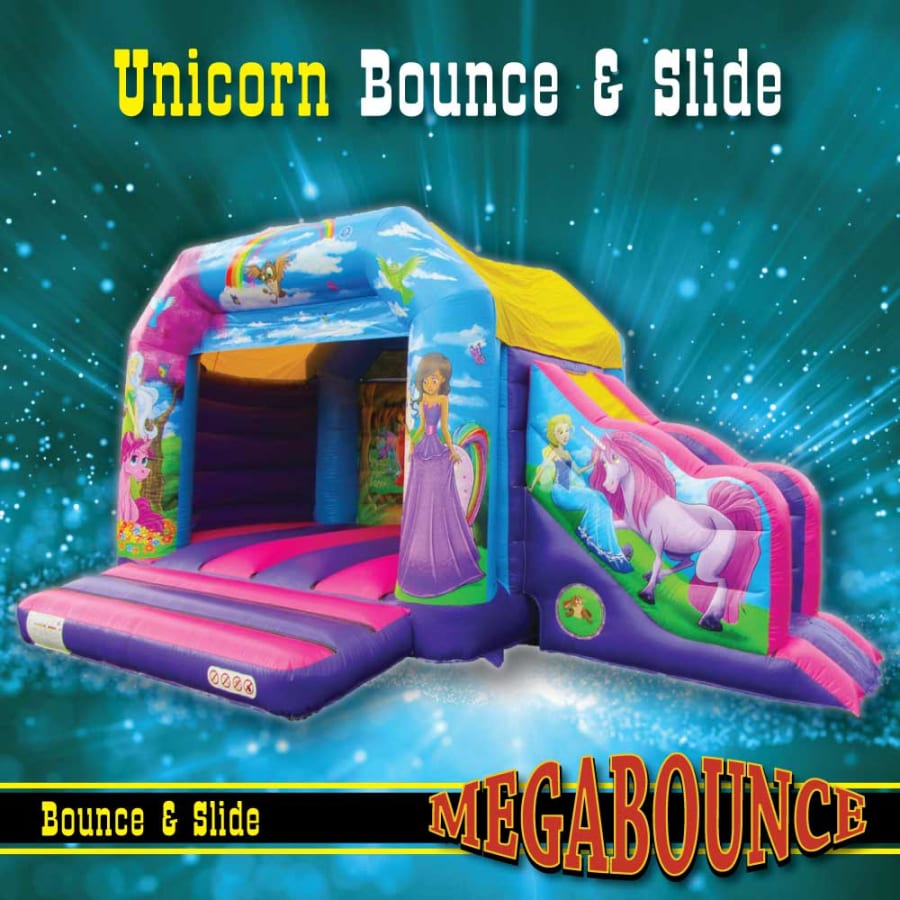 Are you looking for the perfect way to brighten up your unicorn lover’s special day? Look no further, as Megabounce has just what you need to bring a smile to their face! Our 14ft x`16ft Unicorn Bounce and Slide is great for all younger events, keeping the littles ones busy and bouncing all day! Wanting the fun to last longer? For a small charge this fabulous bounce & slide can be yours into the night hours.