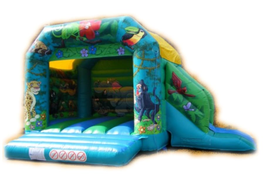 We are family run business, with our great team being proud to announce we are biggest bouncy castle hire in the 4 counties (Herefordshire, Worcestershire, Monmouthshire, Gloucestershire)! With hundreds, even thousands of happy bouncing customers, we can guarantee that your event will be our top priority. We can confidently assure you that your enquiry will be happily received, and this stunning 14ft x 16ft jungle Party bounce and slide will be ready and waiting for your little animals to arrive.