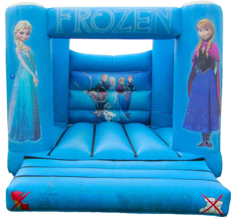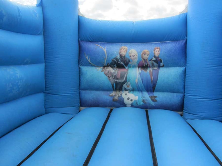 Our Frozen themed bouncy castle is a stunning stark blue colour, making it stand out for the best in any crowd! Its beautiful Frozen character artwork will make it the talk of the party, and keep the memories alive for years to come! The backdrop is filled with all your favourite frozen friends, such as Olaf and Sven, just waiting for you to come and play! The stunning Anna and Elsa stand proud next to their amazing friends, filling your fabulous day with familiar friendly faces, bringing smiles to all your little Frozen fans. It will be the feature piece you’re looking for to add something extra special to any event.