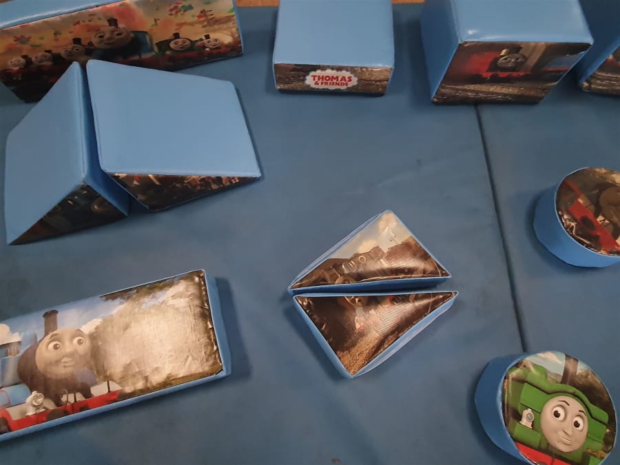 17 x Thomas Soft Play, in soft cubes, squares, triangles, rectangle, circular shapes.