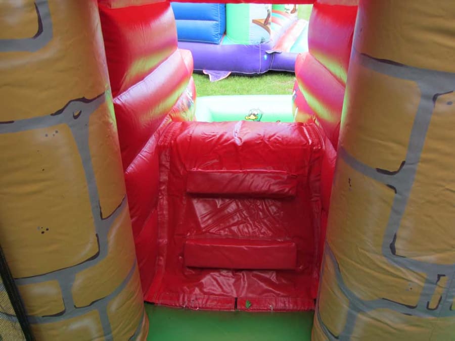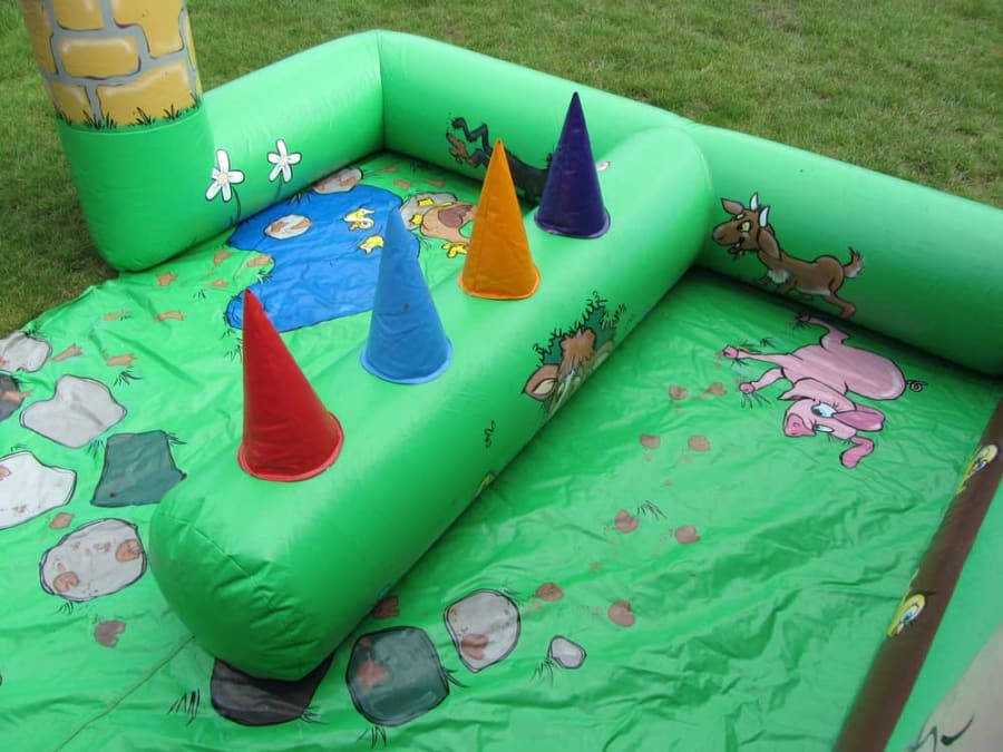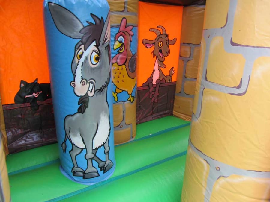 The vibrant farmyard theme will transport young adventurers to the heart of the countryside and welcome them into the world of the farmyard. You will notice this stunning adventure play is covered in stunning graphic art that perfectly depicts the life of a farm. The arch entrance makes for an eye catching start to this bouncing world of fun. Around the castle you will see friendly animals ready to greet you as you jump into action. Meet the pigs, ducks, cats and so many more furry friends! We also provide safety mats at all open areas of the bounce and slide, helping to ensure safe fun throughout the event!