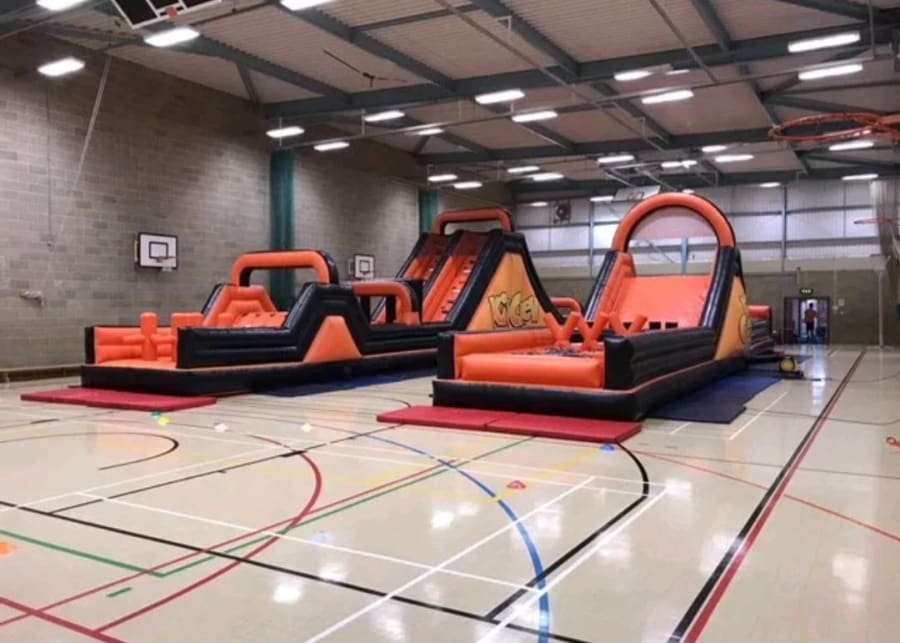 This course is suitable for many surfaces, both indoor and outdoor. This allows for you to have choice between more venues and to bring the fun indoors should you wish. The indoor option also may help to relieve stress should the typical British weather decide to rain on your parade! Concerned about space? Please don’t be! With our easy messenger bot you can send us a quick message and we can work out the technicalities for you, meaning your only job is to get excited about all the fun you’re going to have! For a small charge, power can be supplied, taking yet another stress off your day.