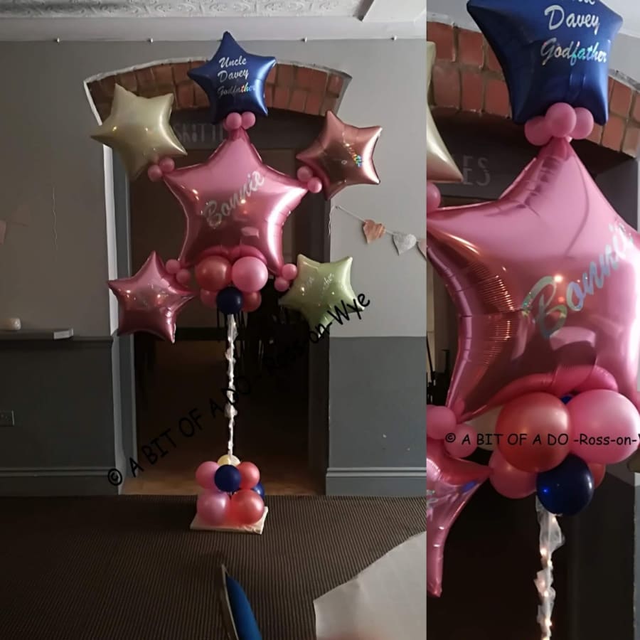 Framed backdrops for themed parties, 4ft hearts and 7ft star frame large floor standing arrangements and columns
