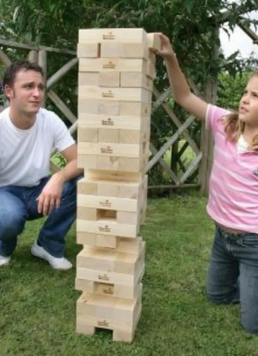 This set comes with 58 large solid blocks that build up to approximately 3ft 5 inches at the start of the game to 5ft whilst in play! Be sure to get in your booking to secure this brilliant garden game for your next event.