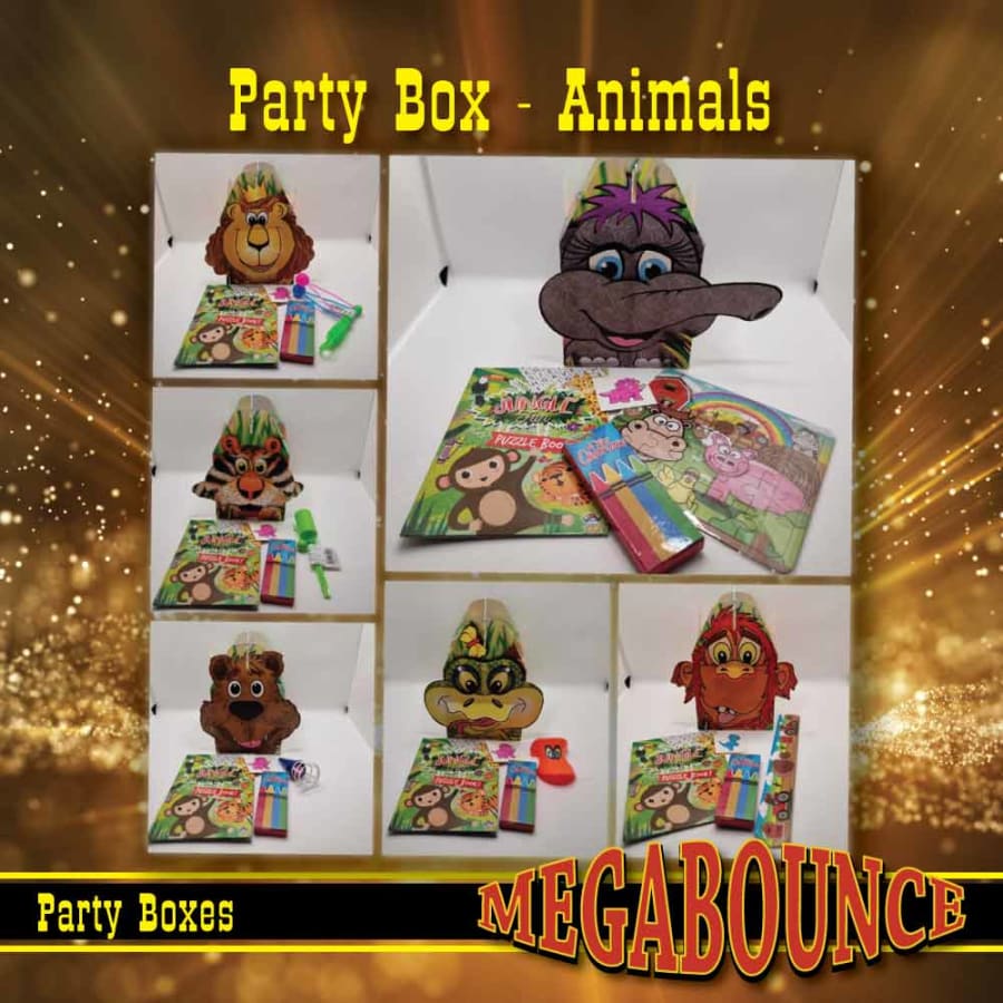 Animal party boxes designs will vary and are selected at random but include: