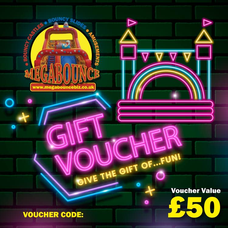 Gift Vouchers can be used against any online orders at www.megabouncebiz.co.uk