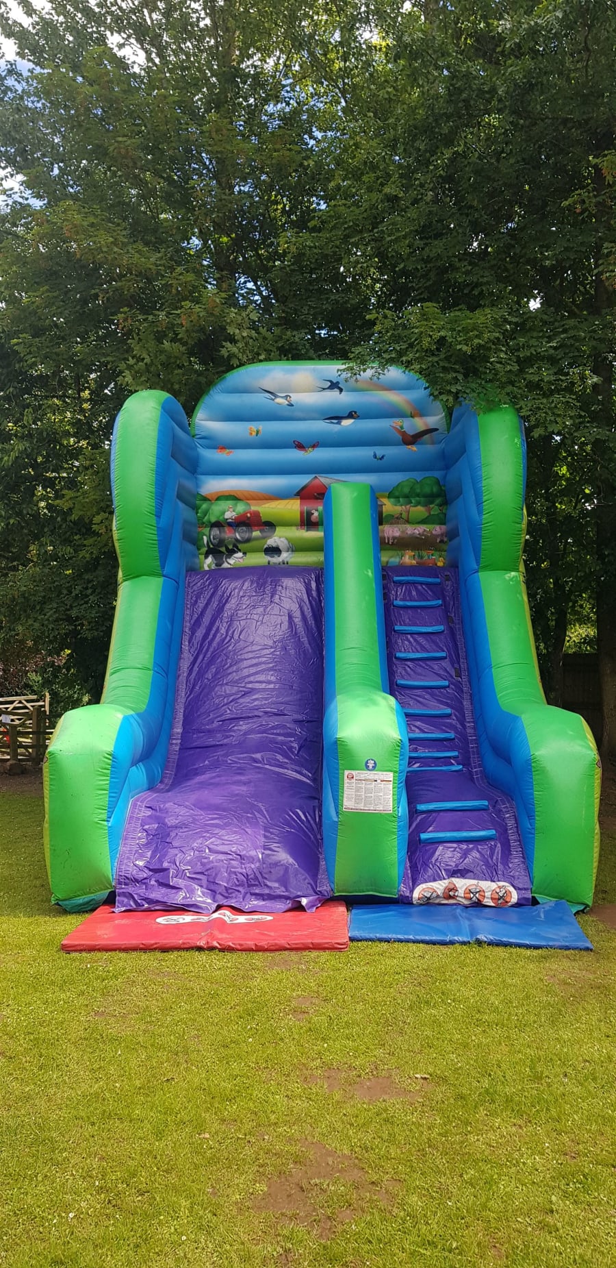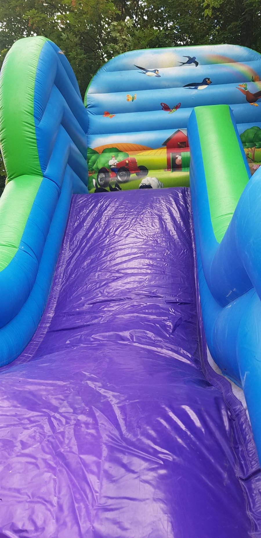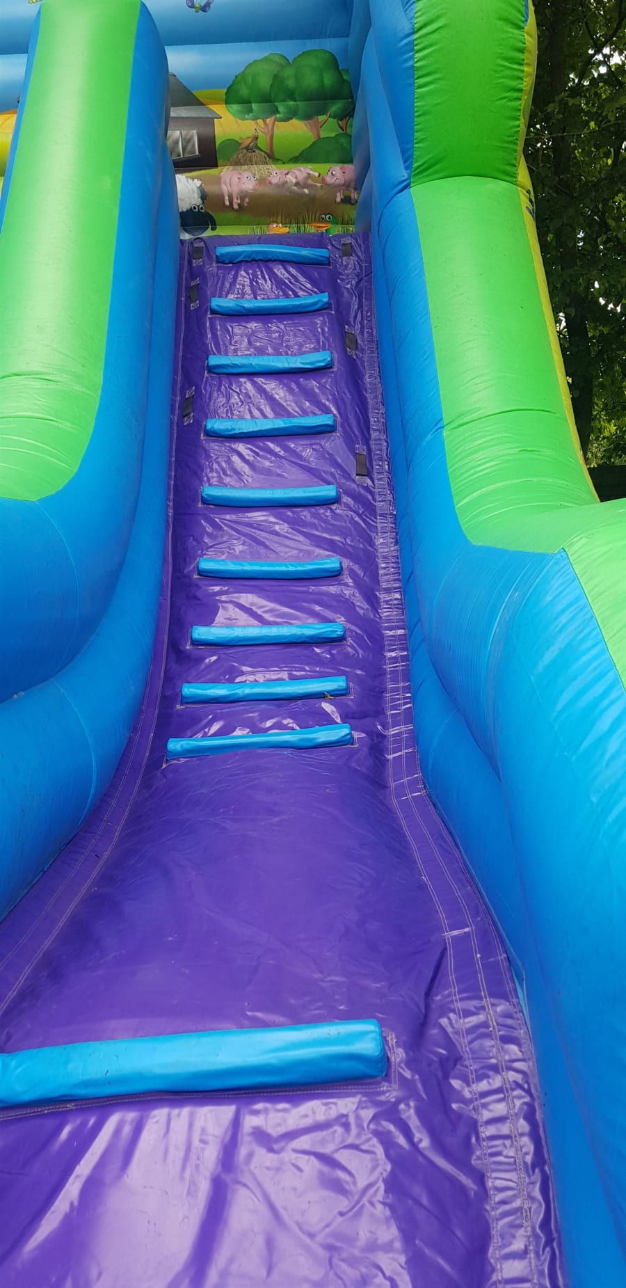 Prepare to be amazed as you approach this colossal slide, towering above everything else on the farm! Standing at an impressive 20ft its sure to capture everyone’s attention, both young and old! As you climb the bouncy steps of the 10ft platform, be ready for the build in anticipation and the excitement you will feel as you slide into your next adventure. With its smooth surface and guaranteed adrenaline rush that will leave you guests wanting more, it’s the perfect feature to have at your next farmyard themed event.