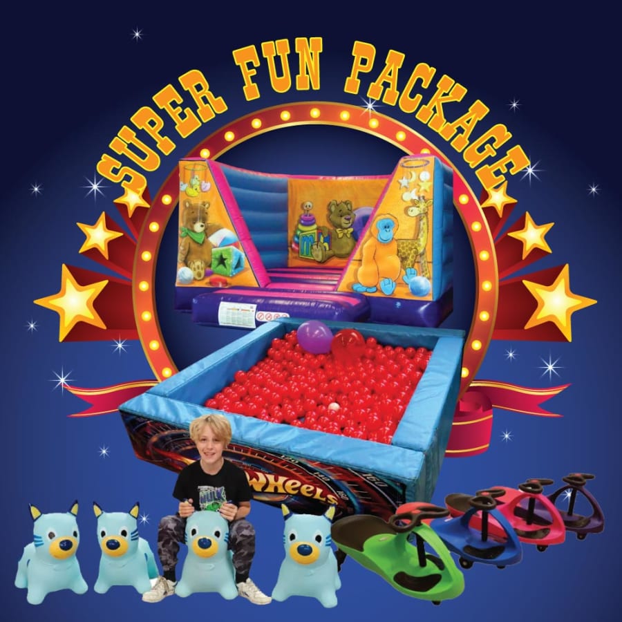 If you’re looking for a brilliant all-round party package that keeps children of different ages entertained, our Super Fun Package delivers exactly that. It combines bouncing, soft play and ride-on fun into one great-value bundle, perfect for birthdays, family parties, schools and community events.